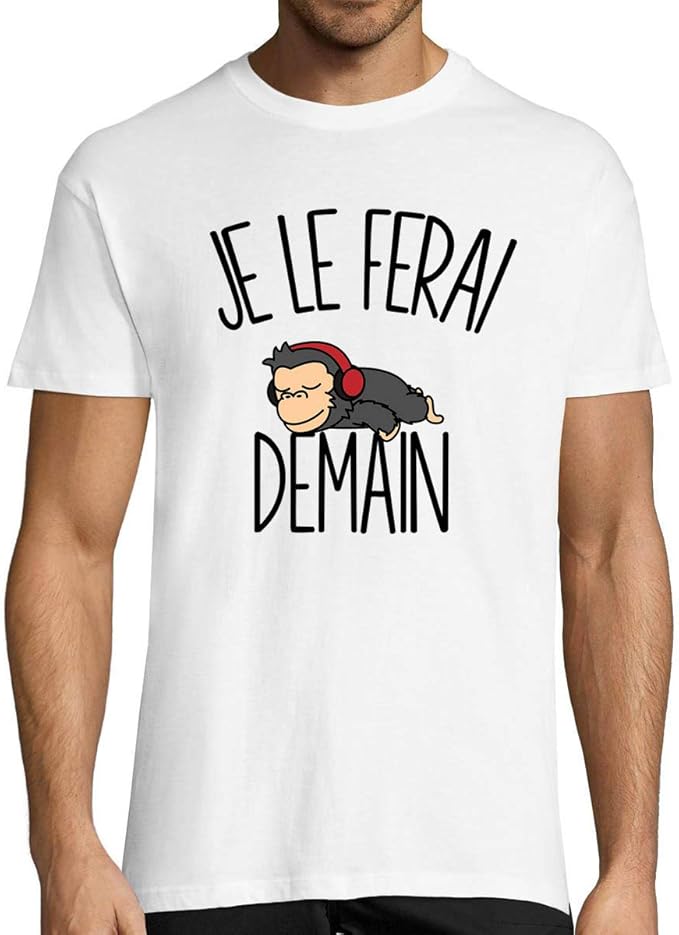 Téléchargement gratuit Singe Casque Musique Je Le Ferai Demain T Shirt Homme Col