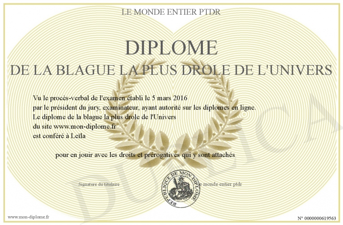 Scarica Gratis Diplome De La Blague La Plus Drole De L Univers